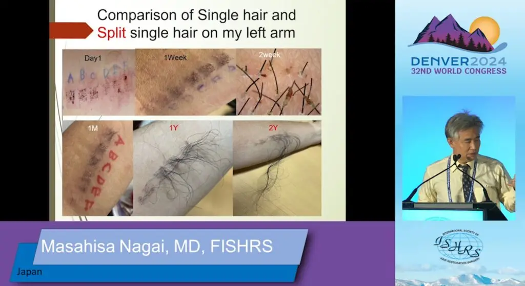 Dr Masahisa Nagai z Japonii przeszczepił włosy z potylicy na swoje przedramię, gdzie stworzył boxy graftów jedno-włosowych – tych występujących naturalnie oraz powstałych poprzez ręczne podzielenie graftów dwu-włosowych.