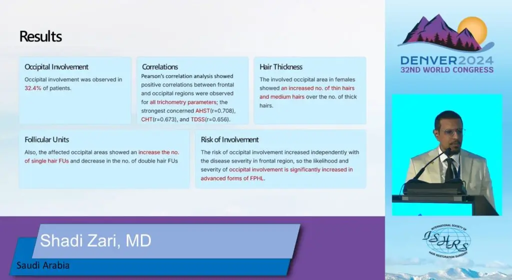 Przedstawiono również badanie, w którym wzięło udział 1000 kobiet z łysieniem androgenowym i . okazało się, że włosy na potylicy (skąd pobieramy grafty do przeszczepu) ulegały procesowi miniaturyzacji u aż 1/3 kobiet z tym typem łysienia.