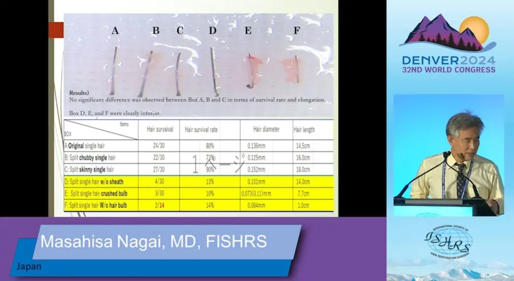Dr Nagai wykazał brak istotnych różnich w przeżywalności graftów jedno-włosowych występujących naturalnie na potylicy, jak i tych wytworzonych poprzez podzielenie graftów dwu-włosowych.
